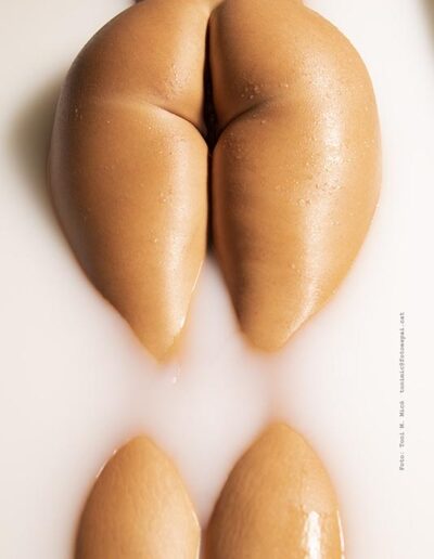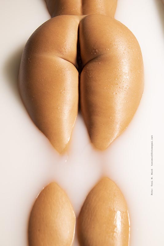 Sessió de nu amb llet, vi, mel i d’altres aliments.